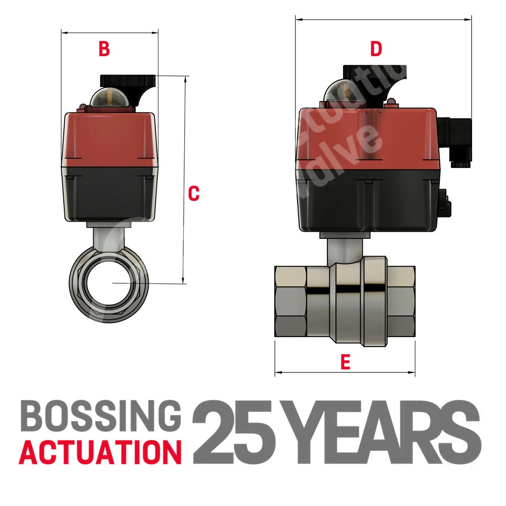 J4CS J&J Electric Actuator 2 Piece Stainless Steel Valves