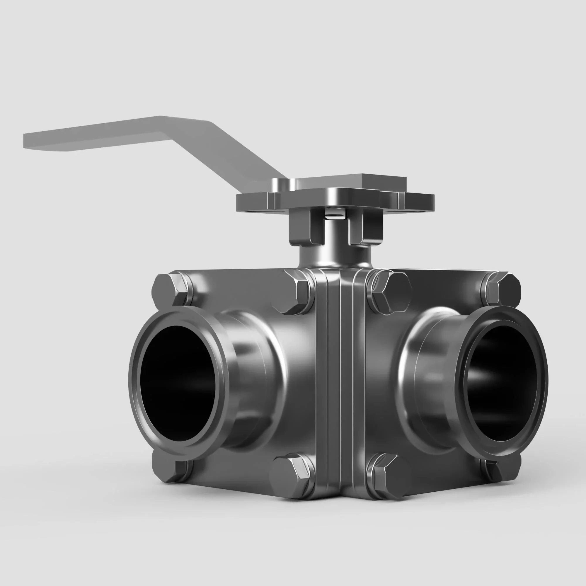 The 3-Way Hygienic Tri Clamp-Weld valve is equipped with a direct mount actuation pad, enabling quick and easy automation. This feature allows us to expedite product delivery while also minimizing the package's overall footprint, weight, and cost. With decades of experience in complex automation systems, our team ensures high-quality products delivered promptly and affordably. Just let us know your requirements, and we'll handle the rest. This 3-Way ball valve package is built for use in harsh external environments and mediums that are aggressive to the material itself.