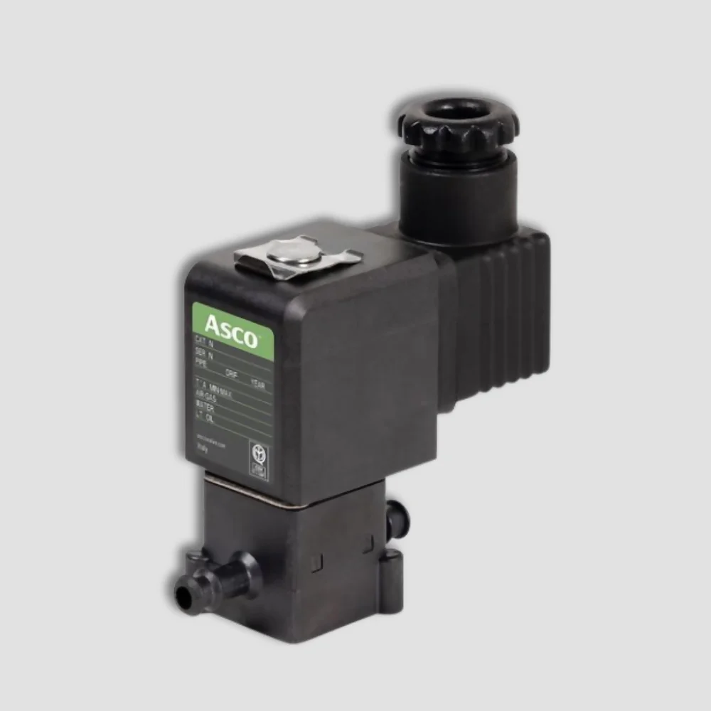 The ASCO™ General Service Solenoid Valves, including the Series 275, 342, and 375, are versatile solutions for managing liquids, gases, air, and steam in medical, analytical, and industrial applications. The Series 275 offers compact, 2-way control with PPS construction, suited to dental sterilizers and autoclaves, handling up to 10 bar and 130°C. The Series 342 provides high-flow, slide-style function for biofuel, dust, and heating systems, while the Series 375 features a 3-way universal valve design for manifold setups, all meeting key safety standards.