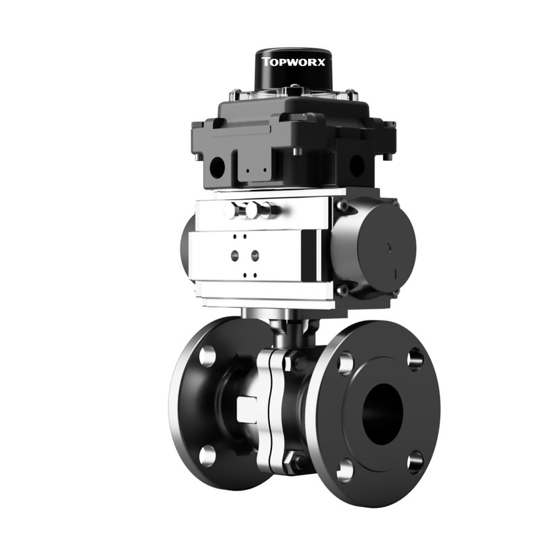 AV-L6N00P40DN0020VT005DA V-Tork Actuated Ball Valves No Spool Valve No Manual Override TopWorx TXP Limit Switch Box ATEX Flanged