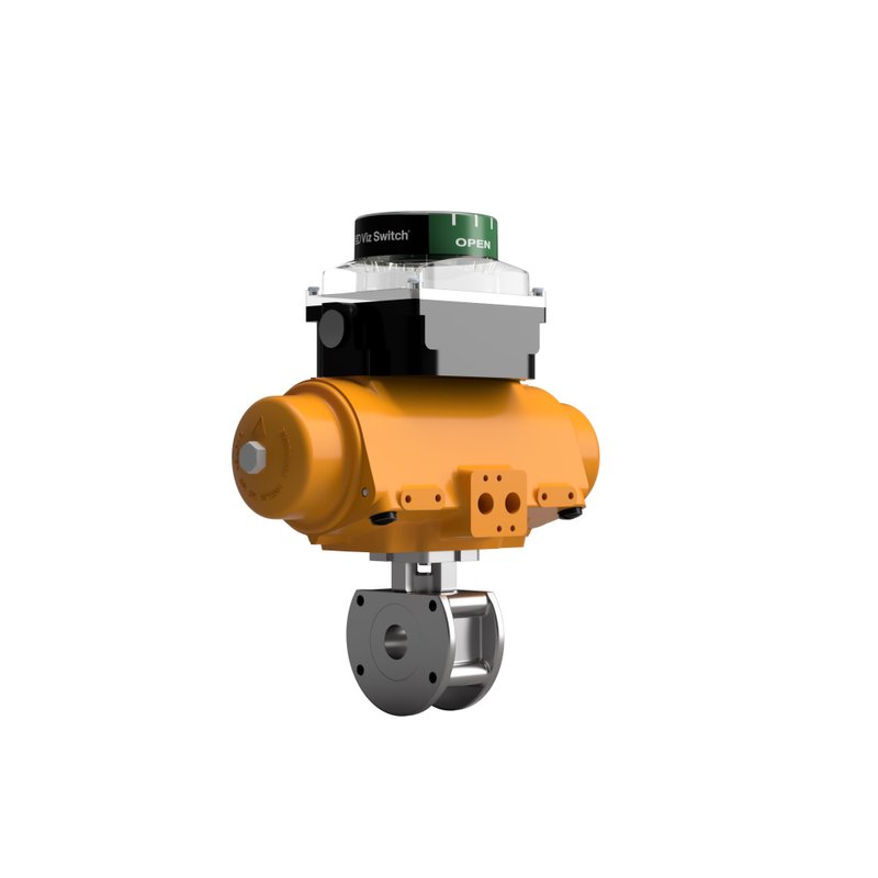 AV-L7K00P16DN0025XL001DA Hytork Actuated Ball Valves Flanged PN16 2 PCE Full Bore Stainless Steel A351 CF8M Double Acting Air Open Air Close Pneumatic VIZ 001 Limit Switch Box IP68 2 X M20 250V 10A