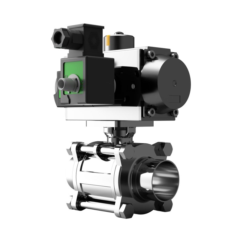 AV-L91B0BWEDN0040VT020DA V-Tork Actuated Ball Valves Hygienic Weld BS4825 400 PSI Double Acting Air Open Air Close Pneumatic 110VAC Solenoid Valve