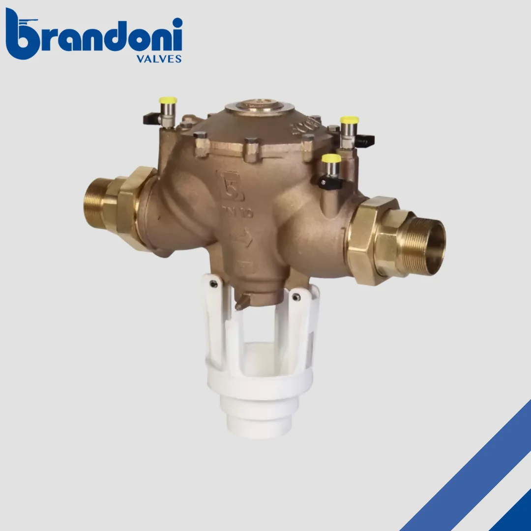 Brandoni Backflow Preventers are used to stop contaminated water or fluids from flowing back into clean water supplies. They are essential for protecting potable water systems in commercial, industrial, and HVAC applications.