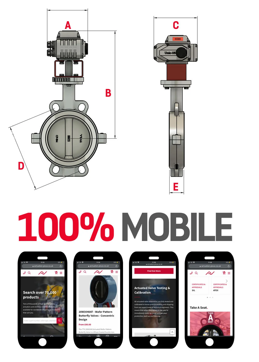 For applications where you need your butterfly valve seals protected from corrosion and heat, our PTFE Butterfly Valve Design offers the perfect solution by using specially designed components made out of PTFE which can withstand even the most extreme operating conditions. Koei Actuators have been producing Electric Actuators from their factory in Japan since the beginning of 2000 and they've quickly established themselves amongst one the leading manufacturers for electric actuator sales. Our Actuated Butterfly Valves offer several benefits over traditional butterfly valves including lower operational torque, low friction contact extending seal life and replaceable seals.