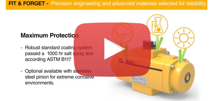 The EL-O-Matic Pneumatic Actuator features a hardened steel piston and utilise high quality materials that do not fail when when exposed to moisture, dust or dirt which makes this product ideal for outdoor use as well as harsh industrial environments where water spray may be present.