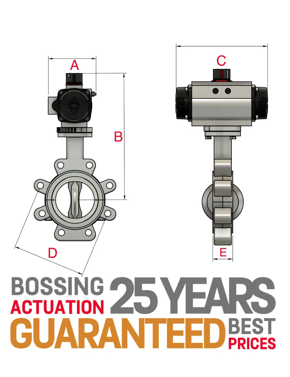 With lugged butterfly valves If one side needs repair, you can simply disconnect it from the piping system and leave the other side connected until repairs are complete. This makes maintenance easier and faster compared to wafer pattern butterfly valves. They make a perfect choice for applications where you need to be able to disconnect the piping from either side of the valve. These lugged connect style butterfly valves feature a built in alignment guide through its bolt holes on both sides. Our Actreg pneumatic actuators combine quality materials that have been designed and engineered for many years of reliable valve operation service. Optional coatings and material combinations include epoxy painting, SS 304/316 stem adaptors and hard anodised ENP body and end caps.