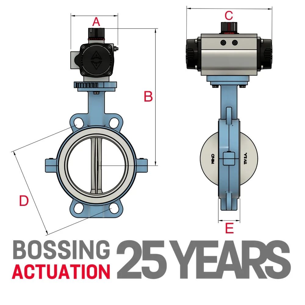PTFE Seat Wafer Pattern Actreg Actuated Butterfly Valves