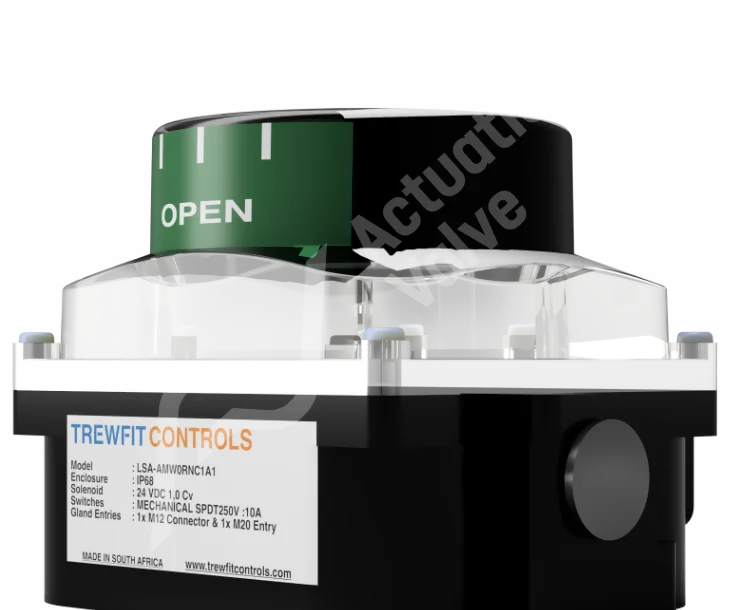 The TrewFit Controls LSA-32WARNM Switchbox features a durable ABS base and a clear co-polyester lid, designed for reliable performance in demanding environments. This switchbox includes a stainless steel shaft and nitrile o-rings, ensuring effective sealing with an IP 68 enclosure rating. It is suitable for mounting to VDI/VDE3845 (NAMUR) standards and offers electrical entries of 2 x M20. With a single pole double throw type, it handles up to 250V 10A and operates between -20°C and 80°C.